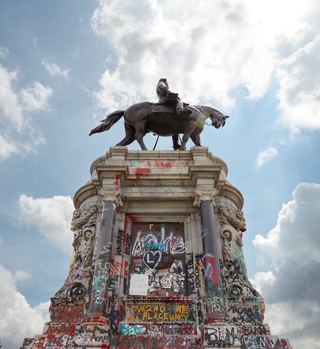 The exhibition begins with photographs of blue mountains that I took in Norway—I see them as portraits of independent, sentient beings. From there, it leads to works that deal with Black Lives Matter and monuments, before opening up into two wings: one with a stronger focus on queer portraits and modernist references, the other on landscape and “body politics.”