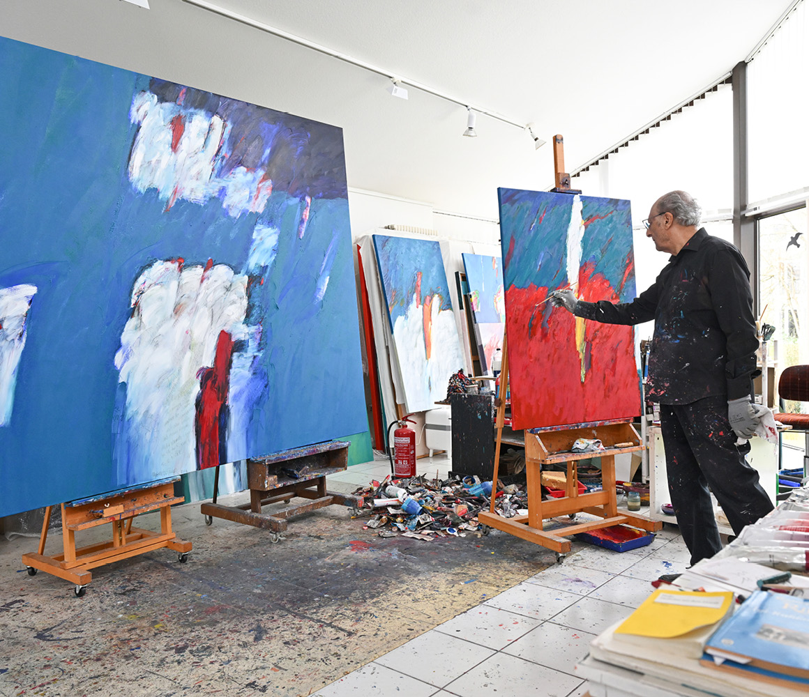 Wer mit Mehmet Güler spricht und ihn in seinem geräumigen Atelier voller Farben und Material erlebt, spürt den enormen Schaffensdrang, der ihn auch mit 82 Jahren noch erfüllt.